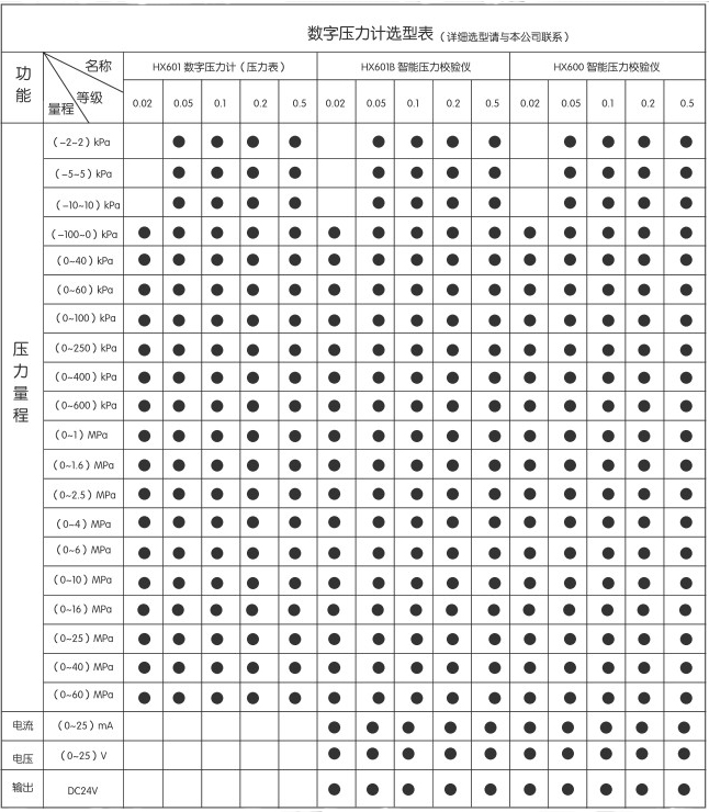 數字壓力計選型表