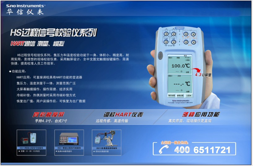 華信儀表過程信號(hào)校驗(yàn)儀系列中HS211、HS212、HS213、HS214、HS215五款不同產(chǎn)品可以滿足所有用戶實(shí)驗(yàn)室和現(xiàn)場(chǎng)不同需求的高效工作,實(shí)現(xiàn)電壓、電流、電阻、頻率、熱電偶、熱電阻、TC和RTD、壓力測(cè)量和輸出等多種應(yīng)用功能,是當(dāng)代溫度、過程信號(hào)校驗(yàn)理想的配置方案。